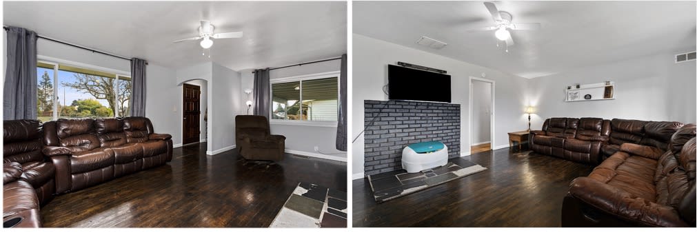 As you step inside past the entrance nook to your left, you'll immediately notice the ever-desirable original hardwoods, a staple of 1950s home construction. Also of note is the brand new paint, a comfortable gray that blends a trendy, blank-canvas color with the classic touches. The lengthy layout of the room and flowy kitchen access makes this a quality game-day living room.