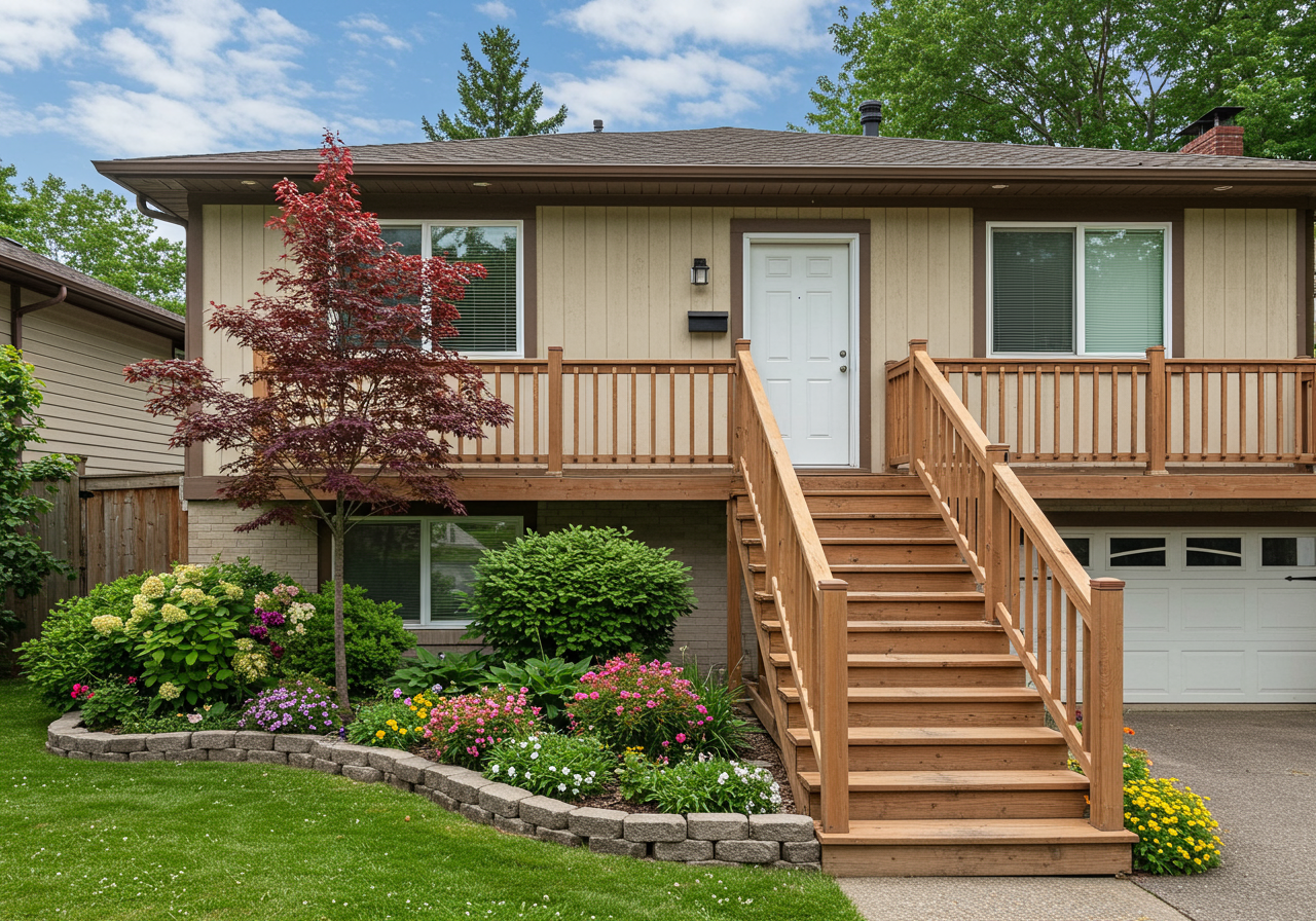 Upon entering during your visit, you’re immediately greeted by the quintessential split-level entryway, capitalizing on timely dark-light contrasts to make a striking first impression. Head upwards towards the living spaces and kitchen, and downstairs to access a suite of bedrooms.