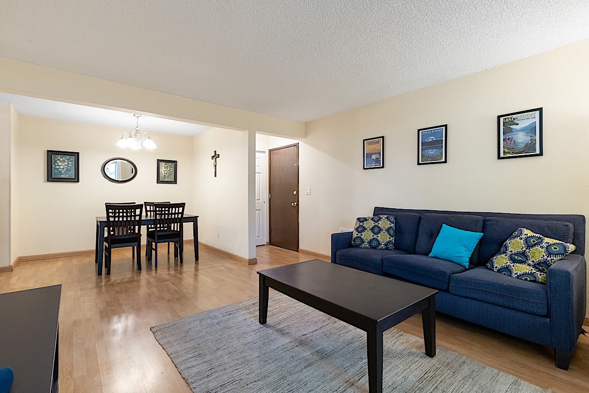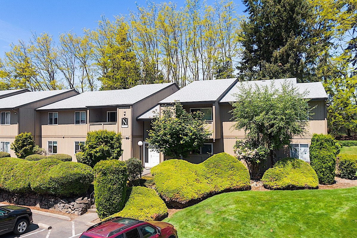 Upon your visit, you’ll first notice the vibrant scenery of the development’s campus, which exudes the classic evergreen quality of the Pacific Northwest in full. The N building in particular features rolling landscaping, a sizable lawn, ample parking for both you and your guests, and a community patio and bench for your outdoor socializing convenience.