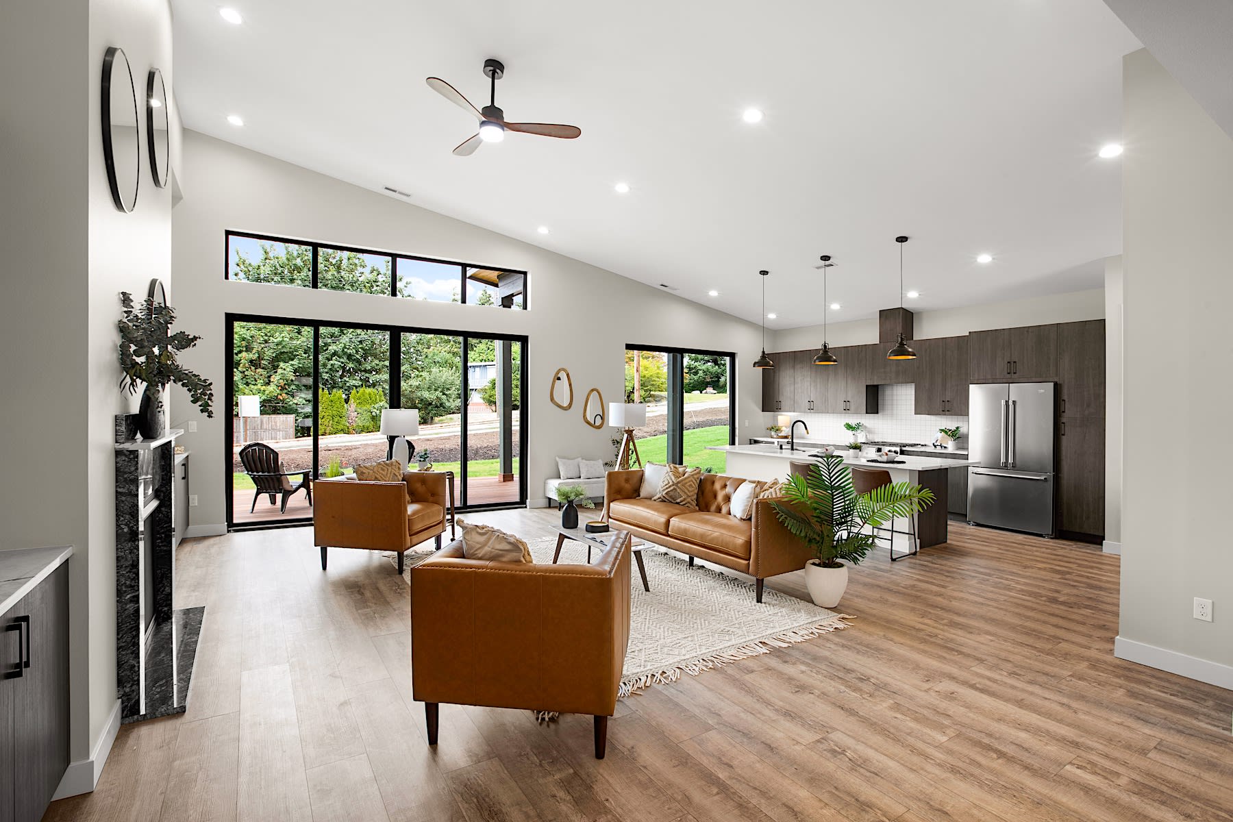 Homeowners will be greeted with a stunning first impression every time they enter this nearly 2,500 SqFt one-level through the front door; one that fills you with a sense of calm and content. Creative angles, a broad floor plan, and tall ceilings wrap you up from the first step you take onto this luxury vinyl plank flooring. To your left, an office nook benefits from an overflow of natural light to curate a serene environment from the work-from-homers. To the right, an entertainment space currently staged as a dining area fit for a candlelit meal. Ahead, a kitchen area with enough room for all your loved ones to stretch their elbows out and relax.