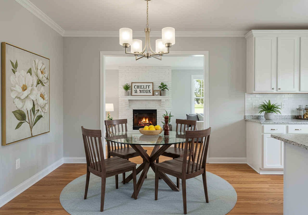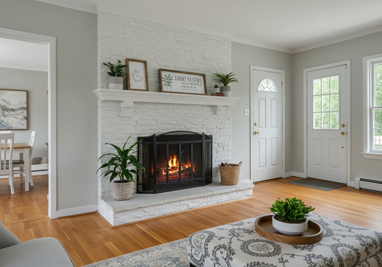 Upon your entrance, your attention will be called to the flowiness of the house, enabled by short lintels between the room-separating walls that minimize obstruction from space to space. With such an open layout, the decor possibilities are numerous. Veer right from the front door to access the home’s three bedrooms, primary bathroom, and a bounty of built-in storage. Alternatively, veer left to enter the living room. There, a fireplace with thick mantle provides plenty of space for your accent pieces, while the raw space lends itself to a variety of potential furniture arrangements that allow the imagination to roam. Neutral paint choices throughout the home also enable all sorts of different style thematics, from modern to mid-century: art deco to California chic. The cherry on top is a bounty of natural light that illuminates the room’s many light, delicate touches.
