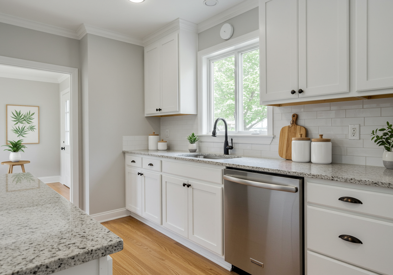 Despite an unassuming facade that presents a homey first impression (one that will soon reveal something more special), this home is deceptively large. At 1,547 square feet, this rambler has more depth to it than first meets the eye, if you’ll allow us a pun that will make itself more apparent later on in this piece. Trendy styling and an eye-catching walkway with white railings and posts highlight the home’s frontal exterior, while the home’s 70’ frontage is accented by a strikingly purple mature cherry plum tree that gives the view out of the living room some nice color.