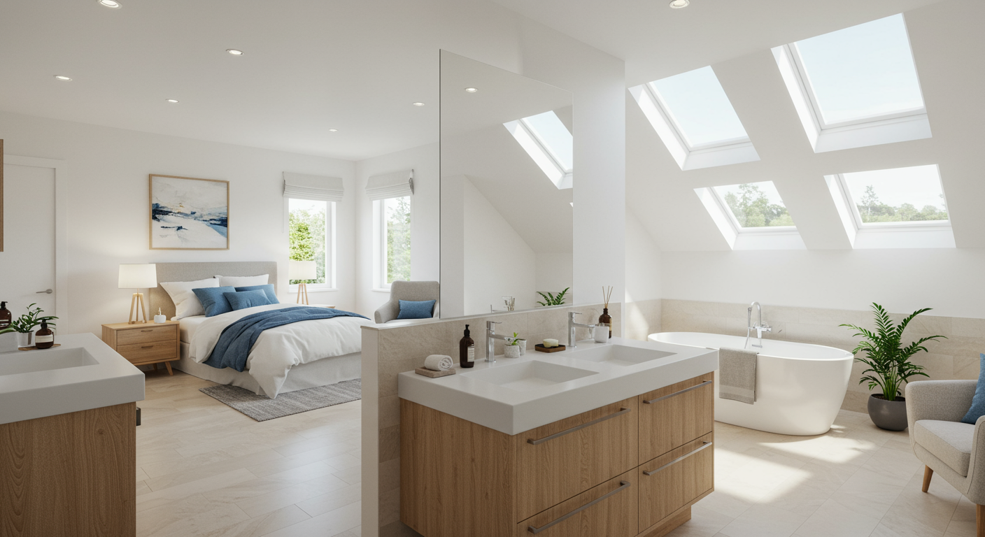 The journey continues down the hallway and into the bedroom corridor. Two spacious guest bedrooms and a full guest bathroom mark the path to yet another highlight of this home: a primary bedroom purpose built to maximize your usable space. This one is all about function, folks. Featuring a roomy walk-in closet and an absolutely darling full bathroom with yet another skylight, this one built into an angled ceiling, there’s not only a ton of charm packed into this dwelling space, but also some real tangible utility.